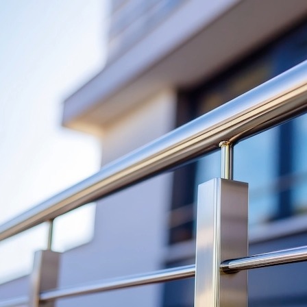 Modernes Balkongeländer aus Edelstahl an einem Wohngebäude als Metallbau-Lösung der Viefhaus GmbH für Privatkunden